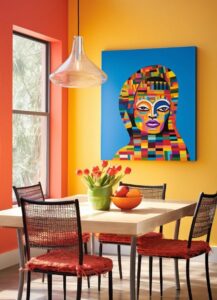 If a calm and cohesive look is desired, the artwork should match the existing palette. Soft tones, similar shades, and subtle contrasts work well.