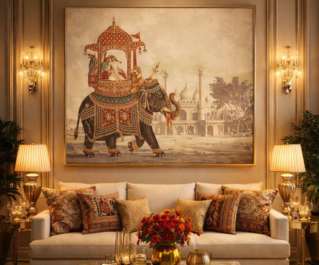 Instead of leaving a large wall empty, it can be turned into an artistic feature. Indian paintings are perfect for this. Their richness and detail naturally draw attention.