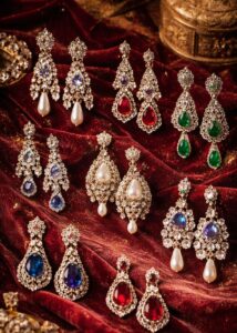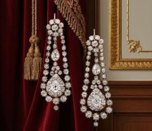 Chandelier earrings and long drop earrings were also highly fashionable. These dramatic designs consisted of multiple articulated sections, sometimes detachable, creating a cascading effect. Their length and movement made them ideal for evening wear.