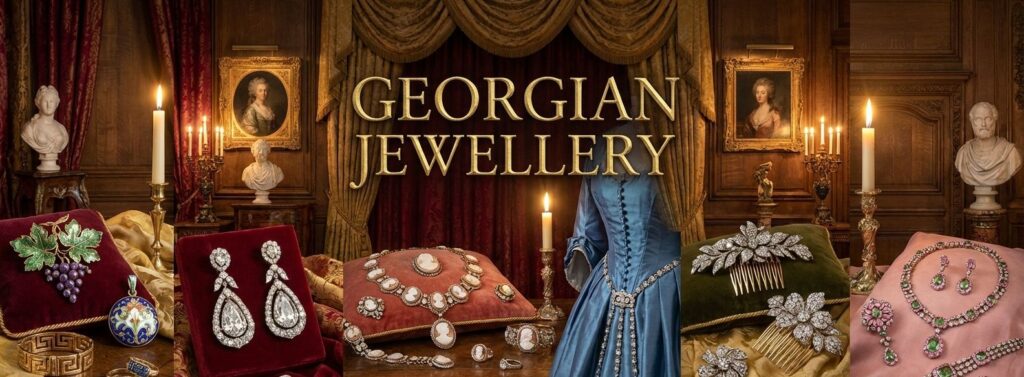 The Georgian period unfolded alongside towering cultural achievements. Mozart composed, Gainsborough painted, and architecture moved fluidly between Rococo ornamentation, Neoclassical restraint, and later Romantic sentimentality. Jewellery followed these same aesthetic shifts.