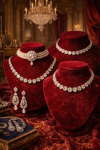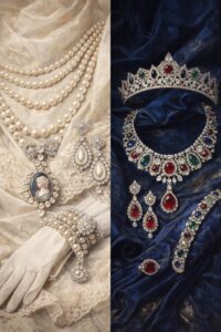When the sun set and candlelight took over, diamonds became dominant. Rose-cut and early old mine–cut diamonds were abundant in evening adornment, chosen for their ability to glow softly rather than flash sharply.