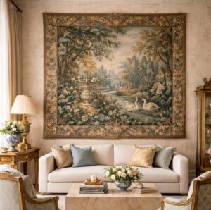 There’s a growing appreciation for tactile, handmade pieces that bring softness and depth to interiors. Whether modern or antique, tapestries work in both traditional and contemporary homes and contribute to a layered, collected feel.