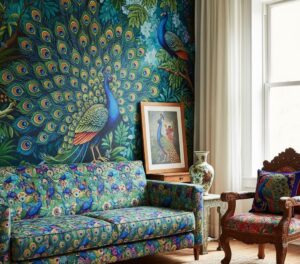Modern décor use: Vibrant peacock motifs bring life and colour to upholstery or framed prints.