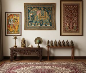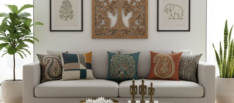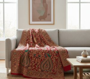 A single, high-quality textile can define a room. Drape a gorgeous, embroidered shawl with Paisley or Peacock motifs over a neutral sofa, or use a Kalamkari cloth with a Tree of Life pattern as a bold wall hanging.