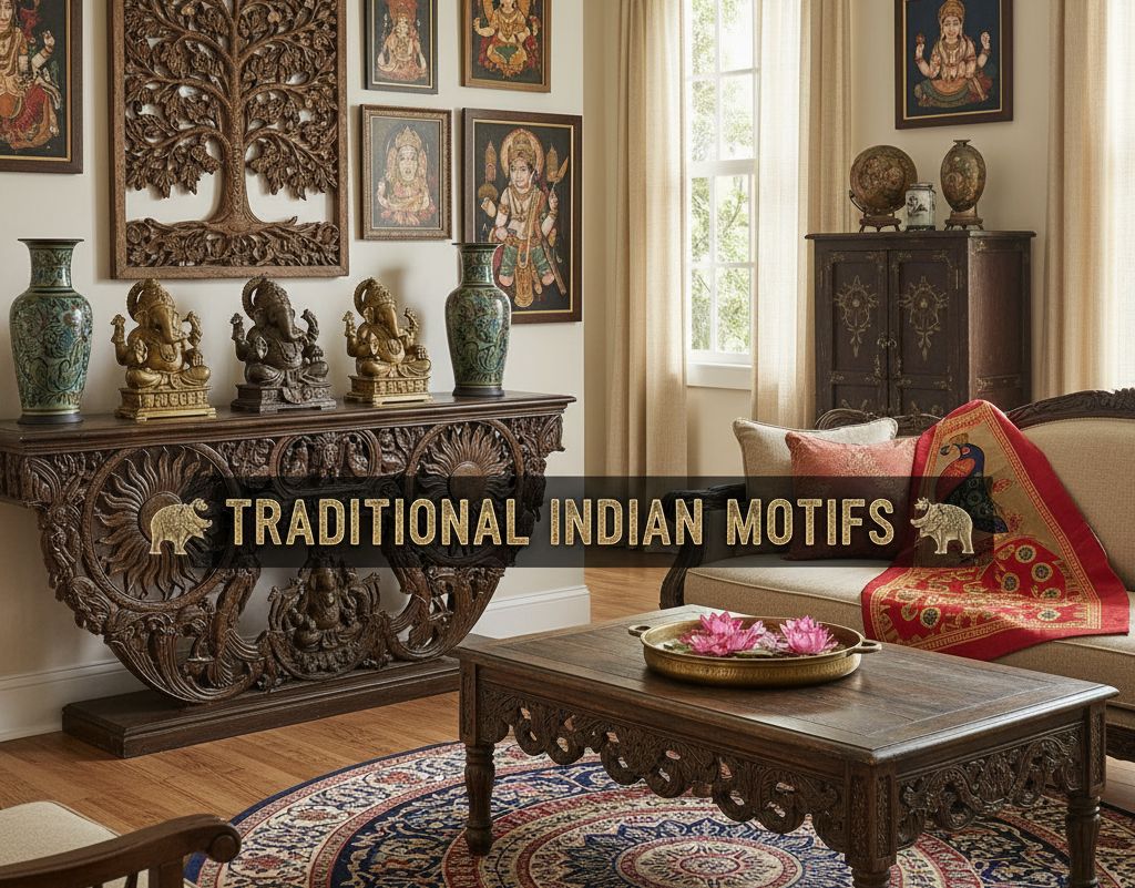 Have you ever gazed at a richly woven silk carpet with Indian traditional motifs, or an antique furniture with ornate carvings or a metal inlay work and felt a connection to something ancient, vibrant, and profound? This is the magic of Indian motifs and patterns that captivates you with a story and engages all your senses.
