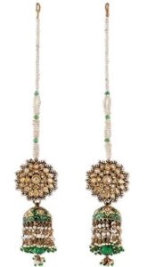 1. LOT 129, A Pair Of Emerald & Basra Pearl Vintage Jhumkas