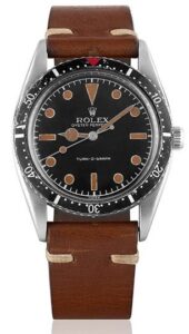 This Turn-O-Graph wristwatch combines technical reliability with understated design. It features a self-winding movement, calibre 645 with two jewels. The black dial carries lume-filled circular hour markers, rectangular baton markers at 6 and 9, and an inverted triangular marker at 12 for clarity. Functional and classic, it shows that collectors at the sale were equally drawn to mechanical precision as they were to fine jewellery.