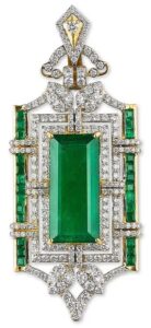 1. LOT 42, An Exceptional Geometric Diamond & Emerald Pendant