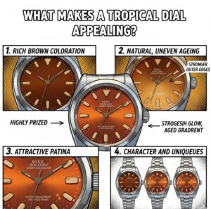 Tropical dial watches are a perfect example of how time can transform a flaw into something beautiful. They carry the spirit of adventure and the marks of a long life lived under the sun. These watches remind us that perfection is not always the goal. Sometimes character, history, and natural ageing create something far more compelling.