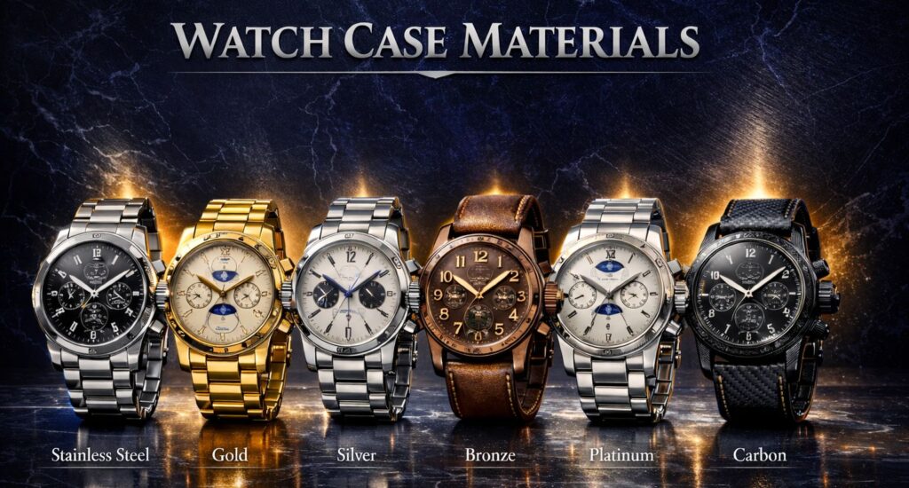 Watch case materials are more than just a shell. They shape how a watch feels, ages, and fits into your life. Whether you prefer the timeless reliability of stainless steel, the warmth of gold, the comfort of titanium, or the innovation of ceramic and carbon, the right material enhances both the experience and enjoyment of wearing a watch.