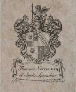 A bookplate (or ‘ex libris’ – Latin for ‘from the library of’) is a name label, often illustrated, that’s affixed to the inside front cover of a book to denote who the owner is. Traditionally placed on the inside front cover, bookplates often include the owner’s name along with decorative elements such as coats of arms, allegorical figures, animals, or literary references. Bookplates are an invaluable source of information when tracing the provenance of books in special collections