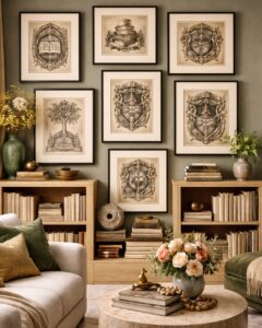 Classic bookplate features such as Latin inscriptions, ornate borders, heraldic symbols, and layered symbolic imagery are being reinterpreted for modern spaces. When framed or reproduced as prints, these designs bring a sense of history without overwhelming the room. The appeal lies in contrast. The precision and restraint of antique bookplate art pair surprisingly well with modern interiors, offering warmth and character where contemporary spaces can sometimes feel sparse. A single framed bookplate can carry more visual interest than larger decorative pieces, simply because it invites closer attention.