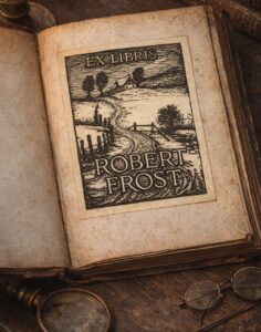 Bookplates created for authors, poets, or scholars sometimes reference their works or intellectual pursuits.