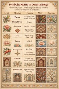 Importantly, Oriental rugs did not begin as luxury items. They were necessities. Nomadic tribes used them for warmth, insulation, bedding, storage, and even shelter walls. Over time, as techniques improved and designs grew more complex, rugs evolved into symbols of wealth, status, and refined taste.
