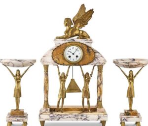 1. Italian Marble Garniture Set in Egyptian Revival Style