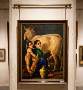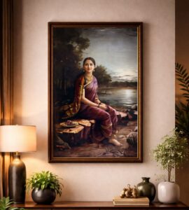 It beautifully showcases Varma’s mastery in combining Indian mythology with European academic realism. The emotional depth of the piece continues to captivate viewers.