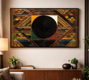 This large acrylic painting reflects Raza’s deep connection to Indian philosophy and spirituality. It remains one of the most celebrated works in Indian contemporary art.