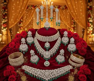 Designed specifically for brides, these sets often include intricate detailing, pearls, diamonds, or traditional gemstones.